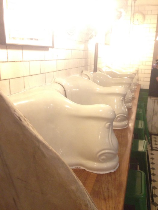 If you’re an avid follower of new cafes and unusual places to visit in London, then you may already have heard of the attendant. In short, it used to be an underground public toilet in the heart of Fitzrovia (area between Oxford Street and Regents Park) and was converted into a cafe a few years back. Don’t worry, as I re-assured my wife, the hygiene specialist – my wife that is – the place doesn’t smell of human waste, just coffee and cakes. It’s dark lit with the old urinals separate sitting areas with a barstool.