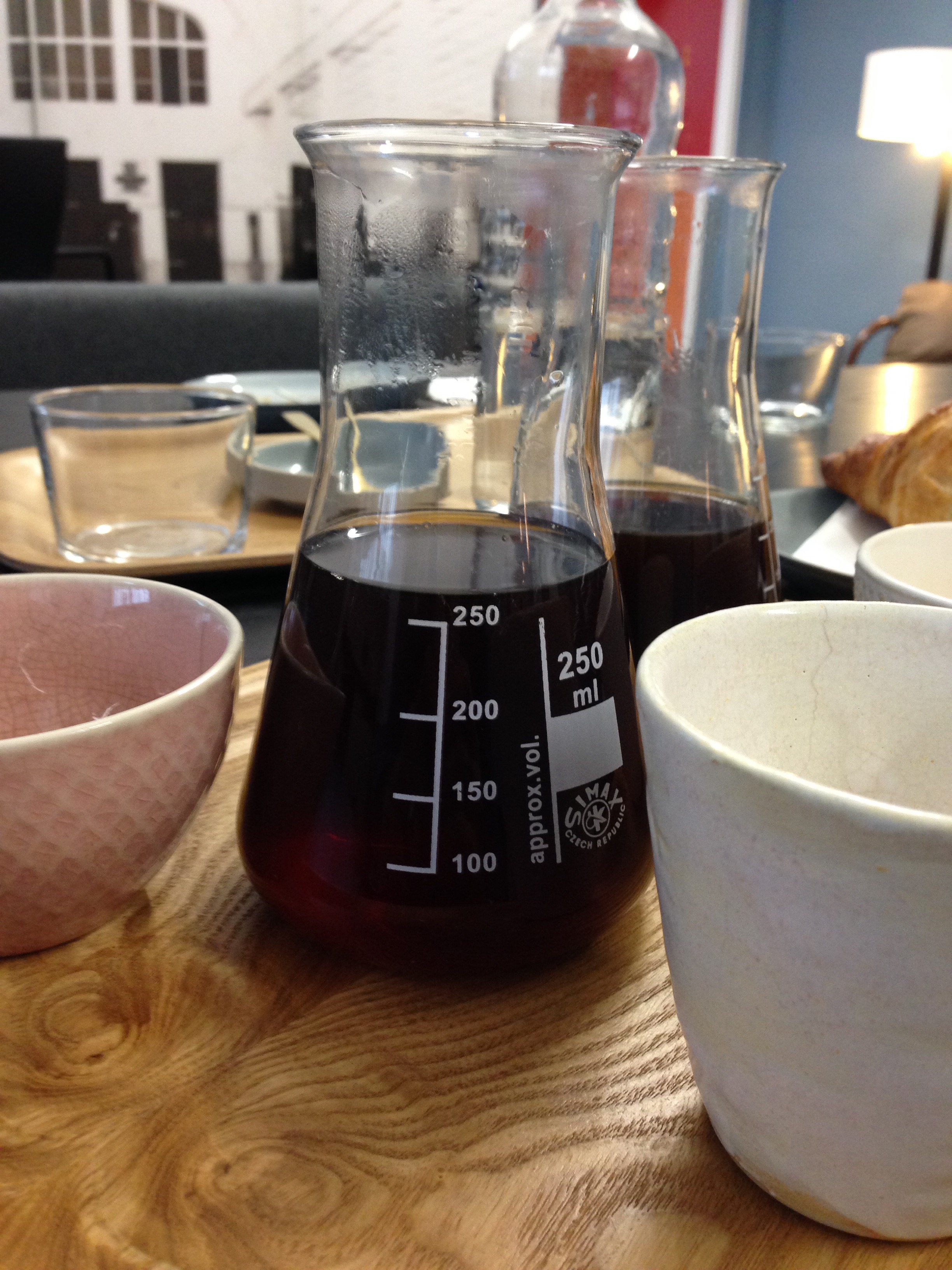 To try out this espresso milk based skills – you know my pattern now – I tried a cortado using a fruity coffee from Ethiopia and my colleague followed suit.