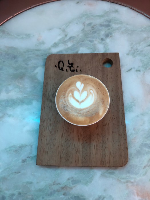 I walked around took some pictures – industrial chic with brass and copper plated ensembles which look like they were bespoke rather than store bought even with a fake grass ceiling. The brew bar was similarly decorated with copper trimmings, brewing gadgets, bags of coffee from famous roasters. When it was my turn , I asked the barista to describe the coffees on offer and their roast date. I think he was a bit shocked, because he knew that I was kind of serious about coffee and he responded enthusiastically. The first coffee had been roasted a few days back and was not recommended but he recommended another that was fruitier and I opted for a cortado, offered as a piccolo
