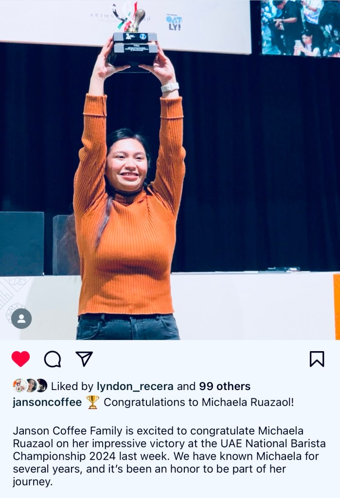Incidentally the UAE BARISTA CHAMPIONSHIP was won by Michaela of Typica coffee (one of my faves) again for the fourth time I think