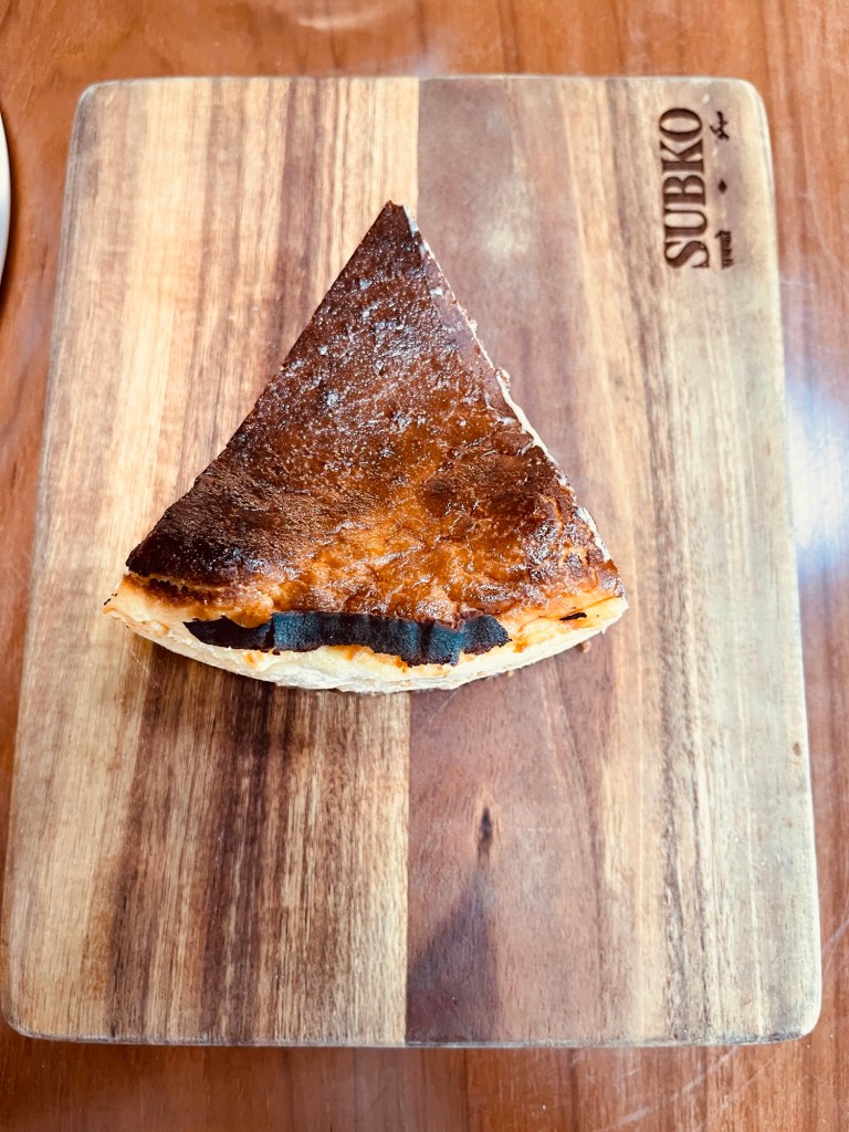On my first trip, I had a cortado and a Basque cheesecake, which I enticed my wife to try on my second trip.