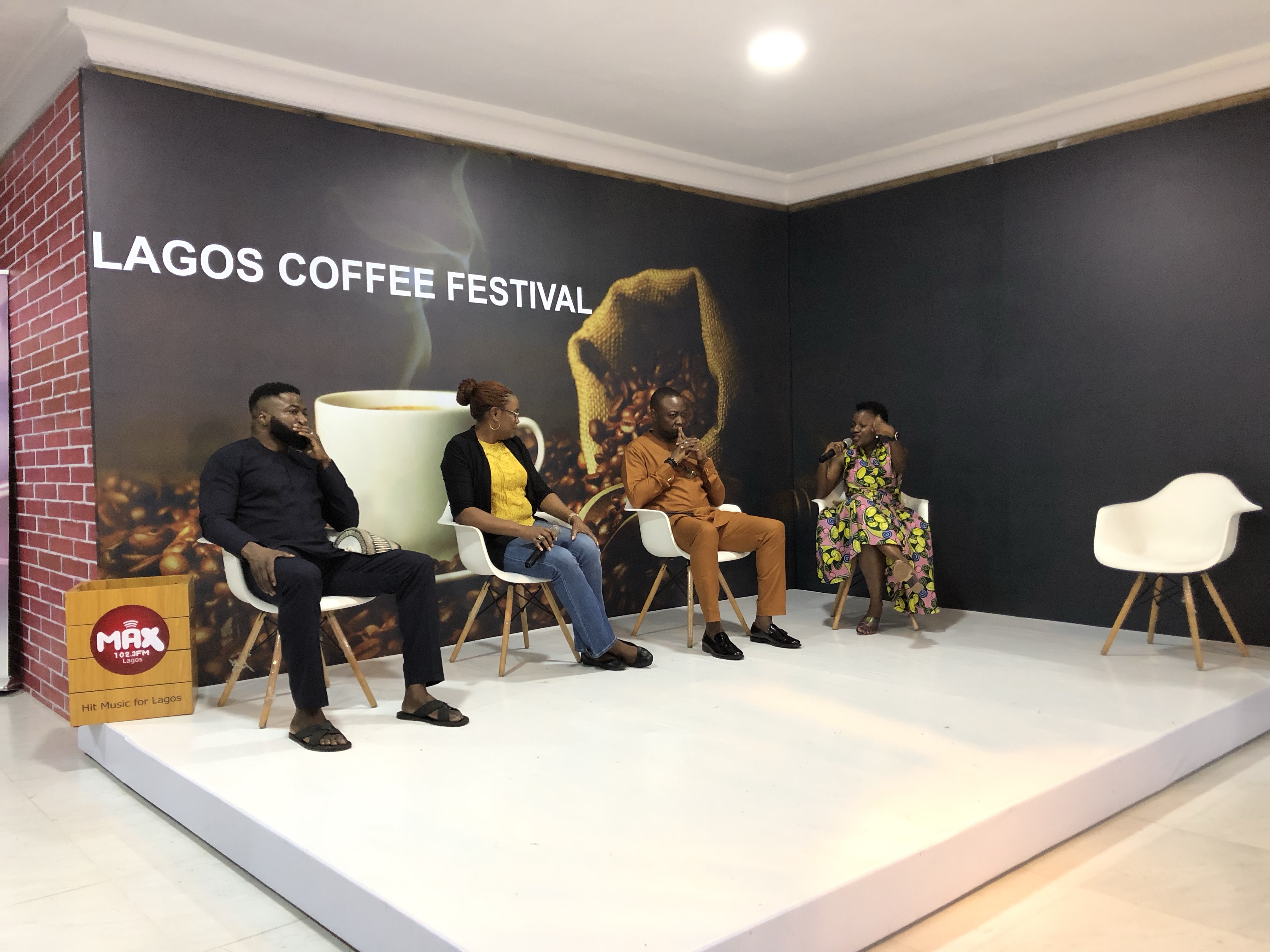 There were three panel sessions; the first focused on “opportunities in the coffee business: creating wealth through coffee”, which featured entrepreneurs who are already in the coffee business, like Yinka of Happy Coffee, Ms Adesola Gbadamosi – Coffeeskinpert founder and My Coffee Lagos owner, Ms Tatyana Buchak. The second focused on “Starting a Coffee based business” with the panel consisting mostly of people who have started non-coffee related businesses but giving tips on how to start a business and find a niche – the main exception was Ibrahim Samande of Mai Shayi Coffee. The third was on “Stakeholders in the Nigerian Coffee Economy: Defining the Coffee Value chain”, which I moderated – filmed entirely by my wife (who accompanied her crazed coffee husband to Lagos), with the panel consisting of Ms Bisola Olusanya, Special Adviser on Agriculture for Lagos State Government, Alhaji Olomide, President of the Nigerian National Association of Coffee and Tea Farmers (NAFCOTAN) and Mr Ejide Oladuoye, a coffee farmer.