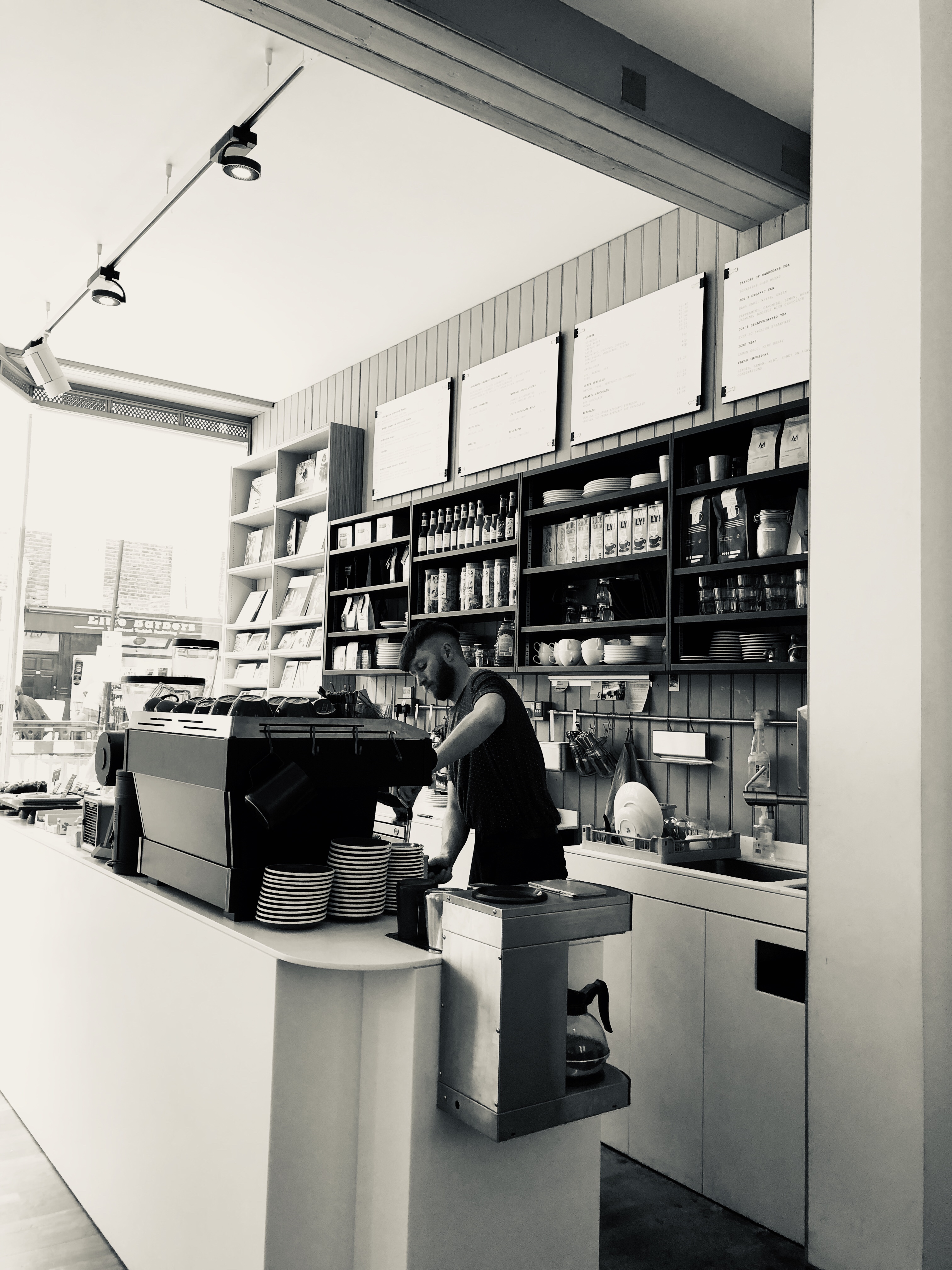 They have their own blends for espresso-based coffee but offer and sell Monmouth coffees and other London based roasteries too.