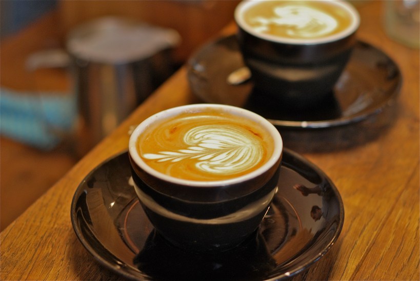 Next to the V60 station, there’s the uber cool, copper water tank, where regulars know this is where you get your water from. The pic at the top of this post is located just outside their shop, but I couldn’t resist snapping away at these flat whites, waiting on the side, prepared by their custom made Nuova Simonelli, with wooden porta-filters and trimmings.